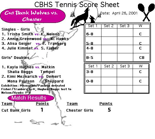 Girls' Varsity on April 26, 2001  @ Shelby Courts
