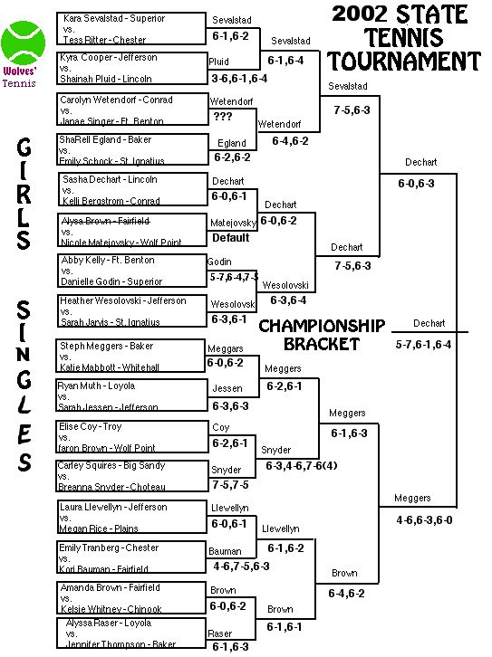 Loyola 5, Ft. Benton 2, St. Ignatius 0, Darby 2, Forsyth 1,