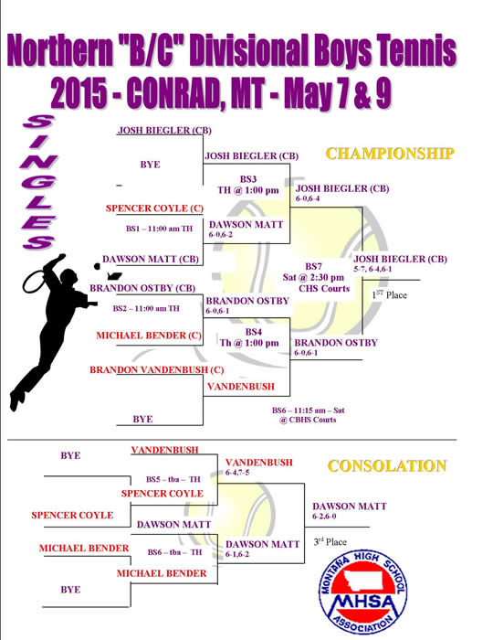 NorthWest Divisional Tournament @ CHS Tennis Complex in Conrad - May 7th & 9th Boys Singles