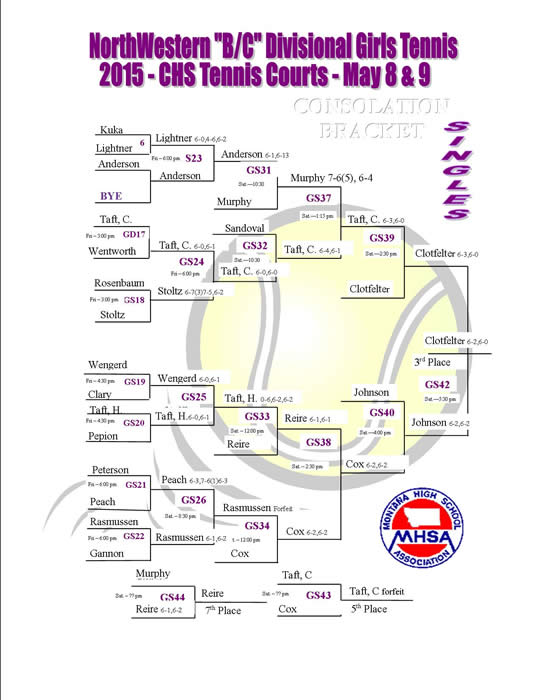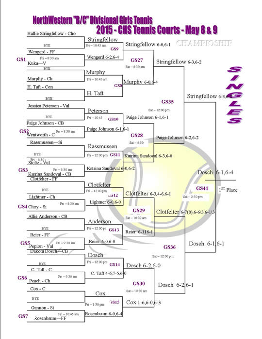 NW Divisional @ CHS Tennis Complex May 8th & 9th Boys Singles