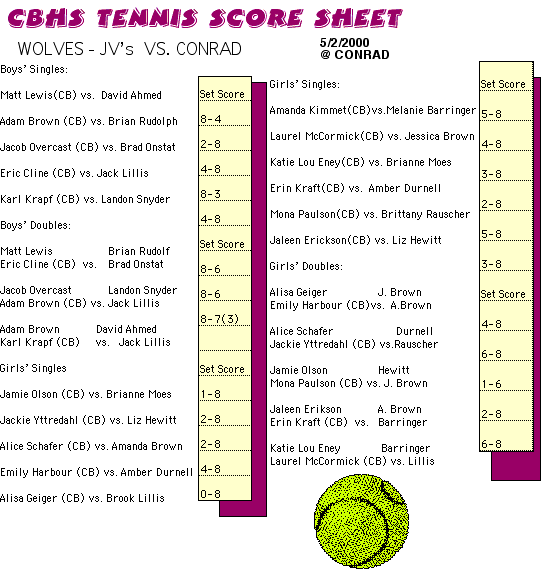 Home |Schedule | Previous Results | Roster | Photos | Coaches' Corner | Links | Alumni |Match Results |