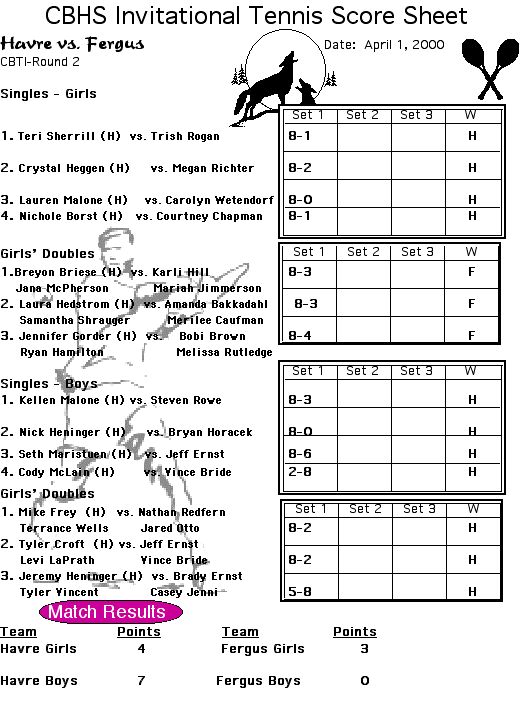 Home |Schedule | Previous Results | Roster | Photos | Coaches' Corner | Links | Alumni |Match Results |