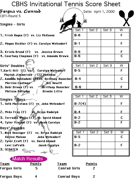Home |Schedule | Previous Results | Roster | Photos | Coaches' Corner | Links | Alumni |Match Results |