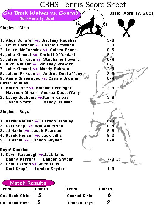 Non-Varsity on April 17, 2001 @ Cut Bank Courts