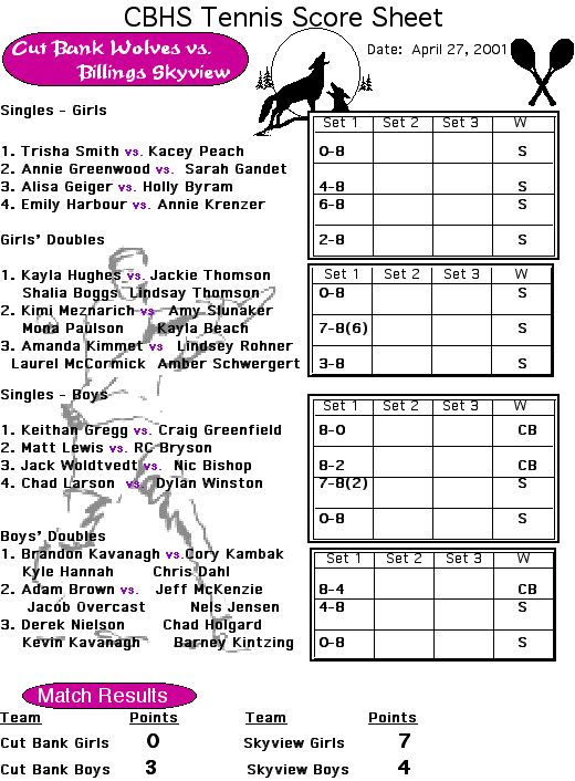 Home | Schedule | Match Results | Roster | Photos | Coaches' Corner | Previous Results | Links |Alumni |Coach Jim Gregg jimg@bresnan.net, 3/4/2004