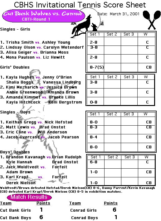 Home | Schedule | Match Results | Roster | Photos | Coaches' Corner | Previous Results | Links |Alumni |Coach Jim Gregg jimg@bresnan.net, 3/4/2004