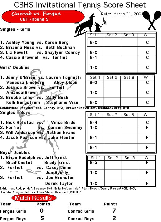 Home | Schedule | Match Results | Roster | Photos | Coaches' Corner | Previous Results | Links |Alumni |Coach Jim Gregg jimg@bresnan.net, 3/4/2004