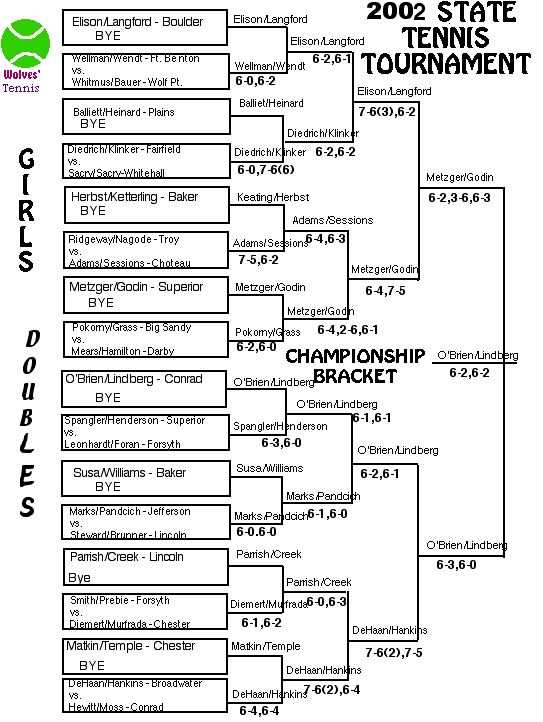 Loyola 5, Ft. Benton 2, St. Ignatius 0, Darby 2, Forsyth 1,