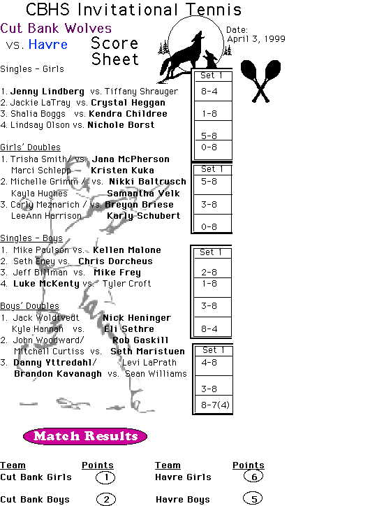 Home | Schedule | Previous Results | Roster | Photos | Coaches' Corner | Links | Alumni |Match Results