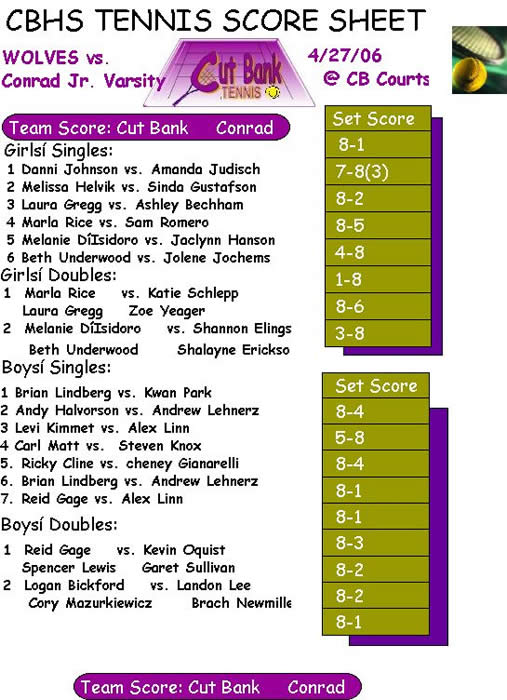 Dual with Conrad Junior Varsity @ Cut Bank 4/27/06